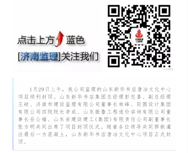 我公司監(jiān)理的山東新華書店唐冶文化中心項目順利封頂