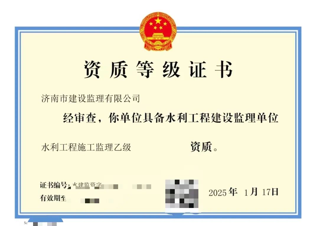 熱烈祝賀濟南監(jiān)理取得兩項水利工程建設(shè)監(jiān)理資質(zhì)